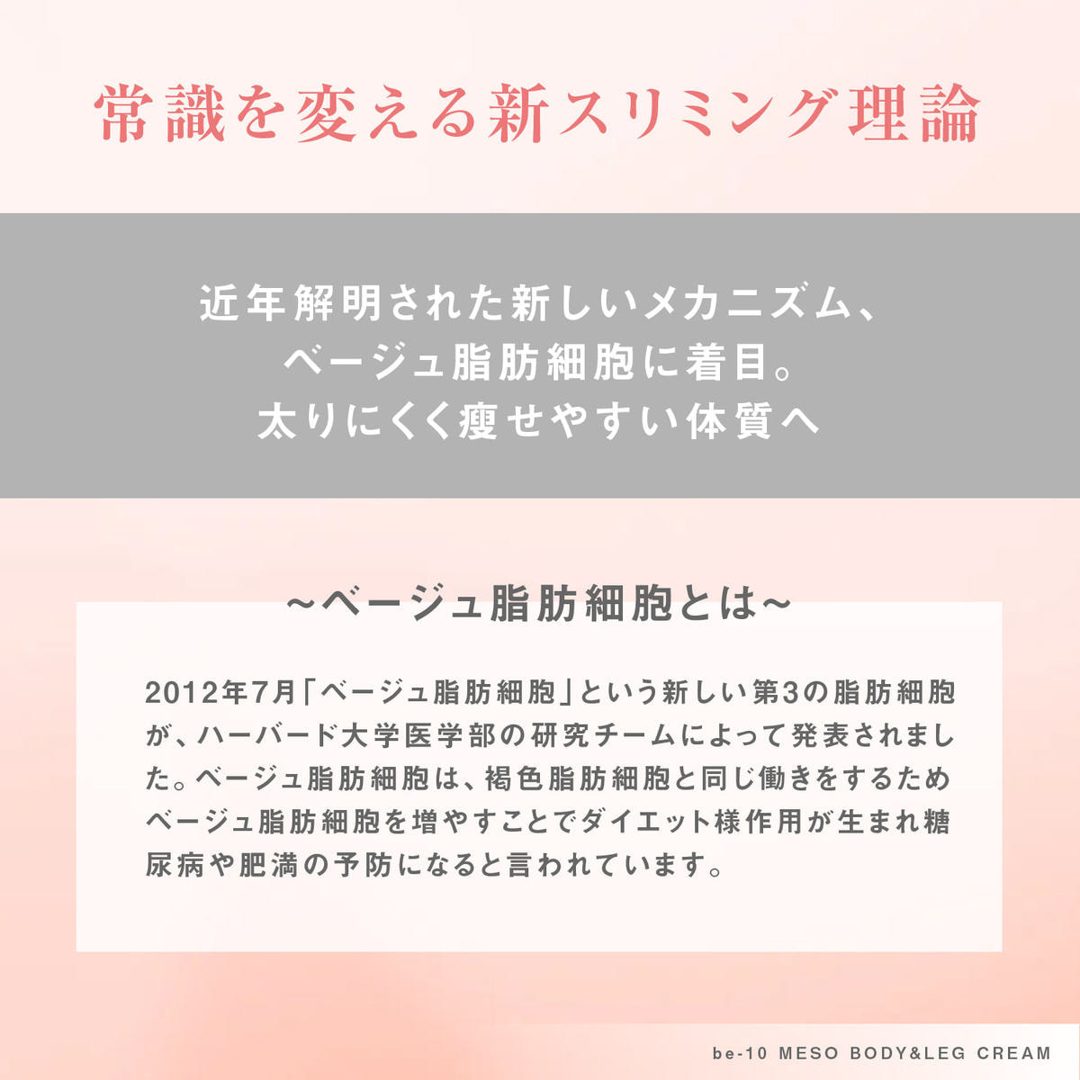 ベージュ脂肪細胞を増やして脂肪を燃焼するだけでなく、何もしなくても痩せやすい体型へ。