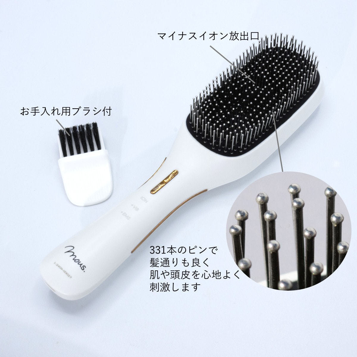 3段階で調節できるEMS&国内最多331本の球体ピンブラシで肌や頭皮を心地よく刺激します。